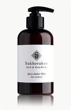 Кондиционер для волос парфюмированный SPICY AMBER BLISS от бренда Sukhorukov Bath&BodyWorks предлагает комплексный уход за волосами, обеспечивая им блеск, питание и увлажнение. Состав, включающий экстракты банана, лотоса и арники, а также витамин Е, пантенол, кератин, масло ши, коллаген, способствует восстановлению здоровья и силы волос. Этот кондиционер подходит для всех типов волос, включая нормальные и поврежденные, и обеспечивает их мягкость, управляемость и приятный аромат.